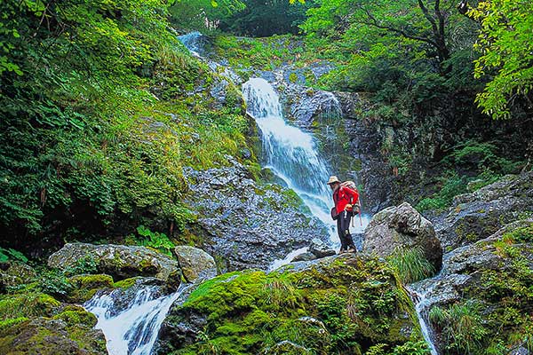 청량한 물살과 계단을 이룬 절벽과 이끼가 어우러져 폭포 앞에 있는 것만으로 더위를 잊게 된다.