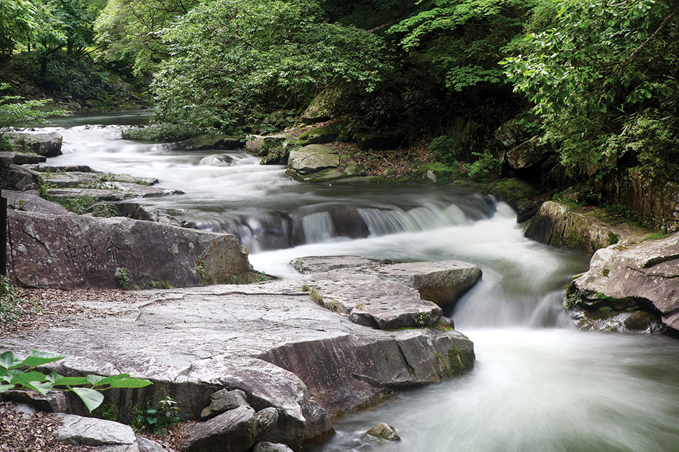 길은 대체로 평탄하고 고즈넉한 숲길이다. 무흘구곡의 백미로 손꼽히는 용추폭포는 무더위를 씻어내 주기에 충분하다.