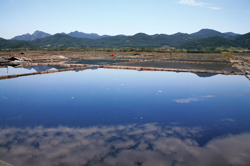 깨끗한 바닷물을 가두어 말리는 증발지는 푸른 하늘을 그대로 품은 채 반사하고 있어 그 옆을 걷다 보면 마치 구름 위를 걷는 듯한 기분이 든다.
