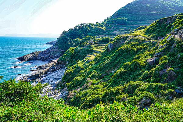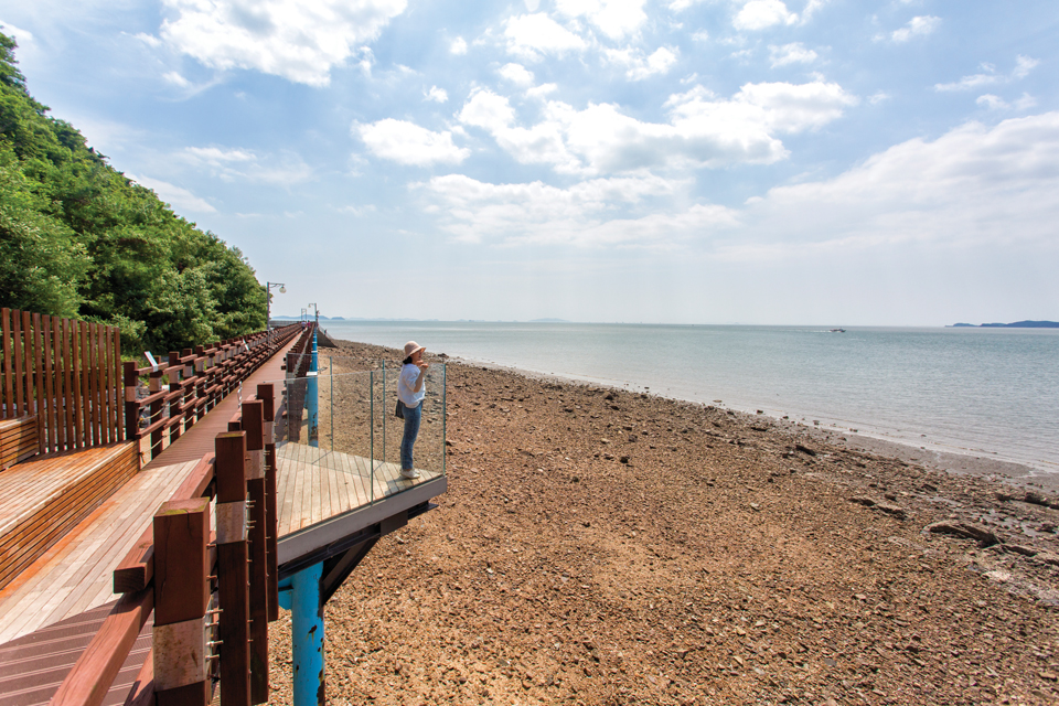아름다운 남해 바다와 그림 같은 해안 절벽은 물론 방풍림으로 빼곡한 소나무 숲과 남해의 청정 갯벌까지 만날 수 있다.