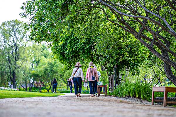 진초록빛을 뽐내는 메타세쿼이아 숲 산책로를 거닐다 보면 일상의 스트레스가 어느덧 사라진다.