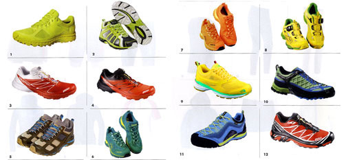 신발은 살로몬, 호카, 퀘차(Quechua), 뉴발란스, 라스포르티바, 미즈노, 아식스, 사코니, 몬트레일, 브룩스, 이노브, 르까프 등이 특성에 잘 맞춘 제품들을 생산한다고 할 수 있다.