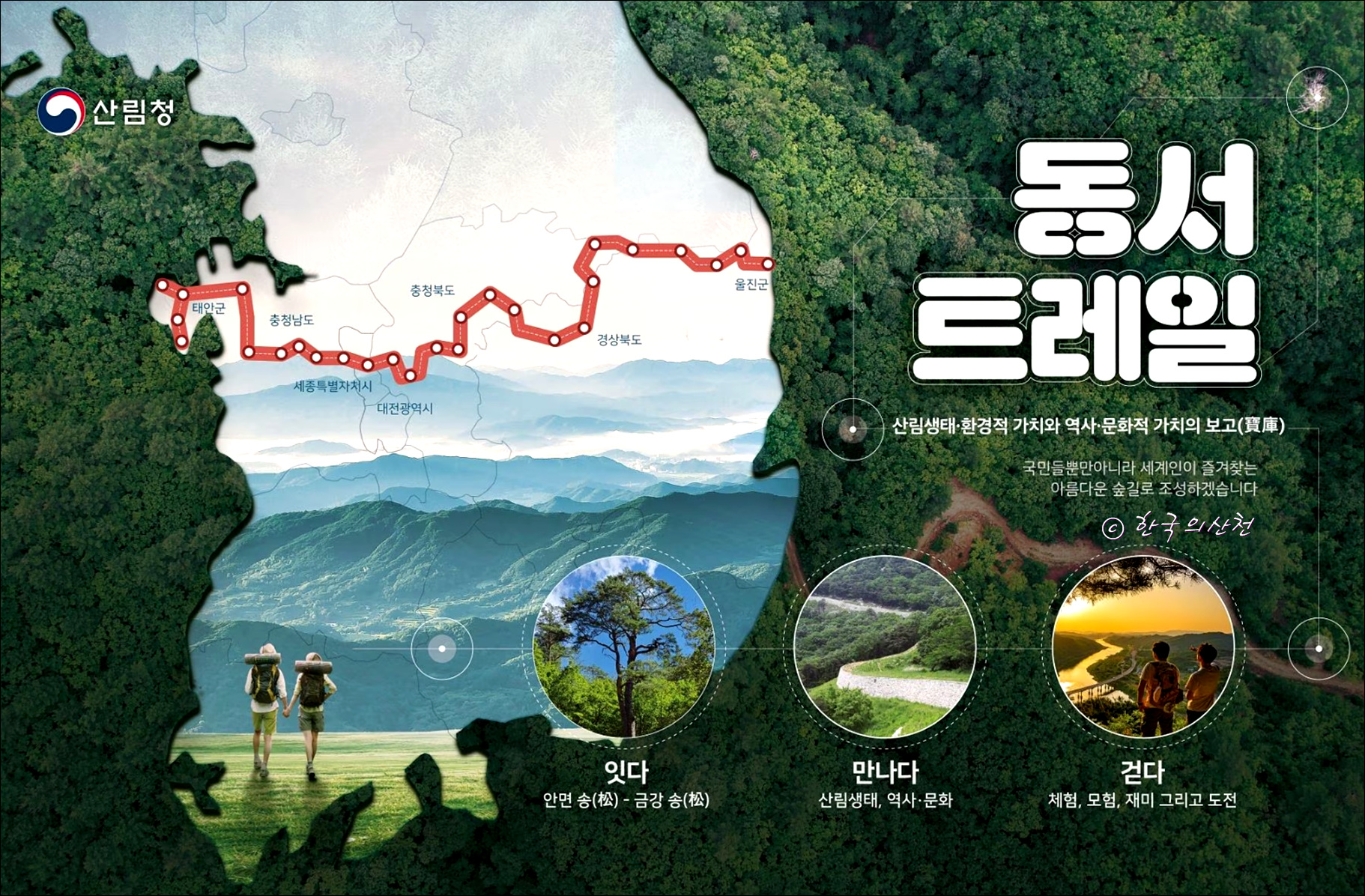 한반도 동쪽과 서쪽을 연결하는 ‘동서트레일’ 조성 사업이 첫 삽을 떴다. 트레일은 기존의 수직적인 등산로가 아닌 산림의 주변을 걸어가기 위한 숲길을 말한다.