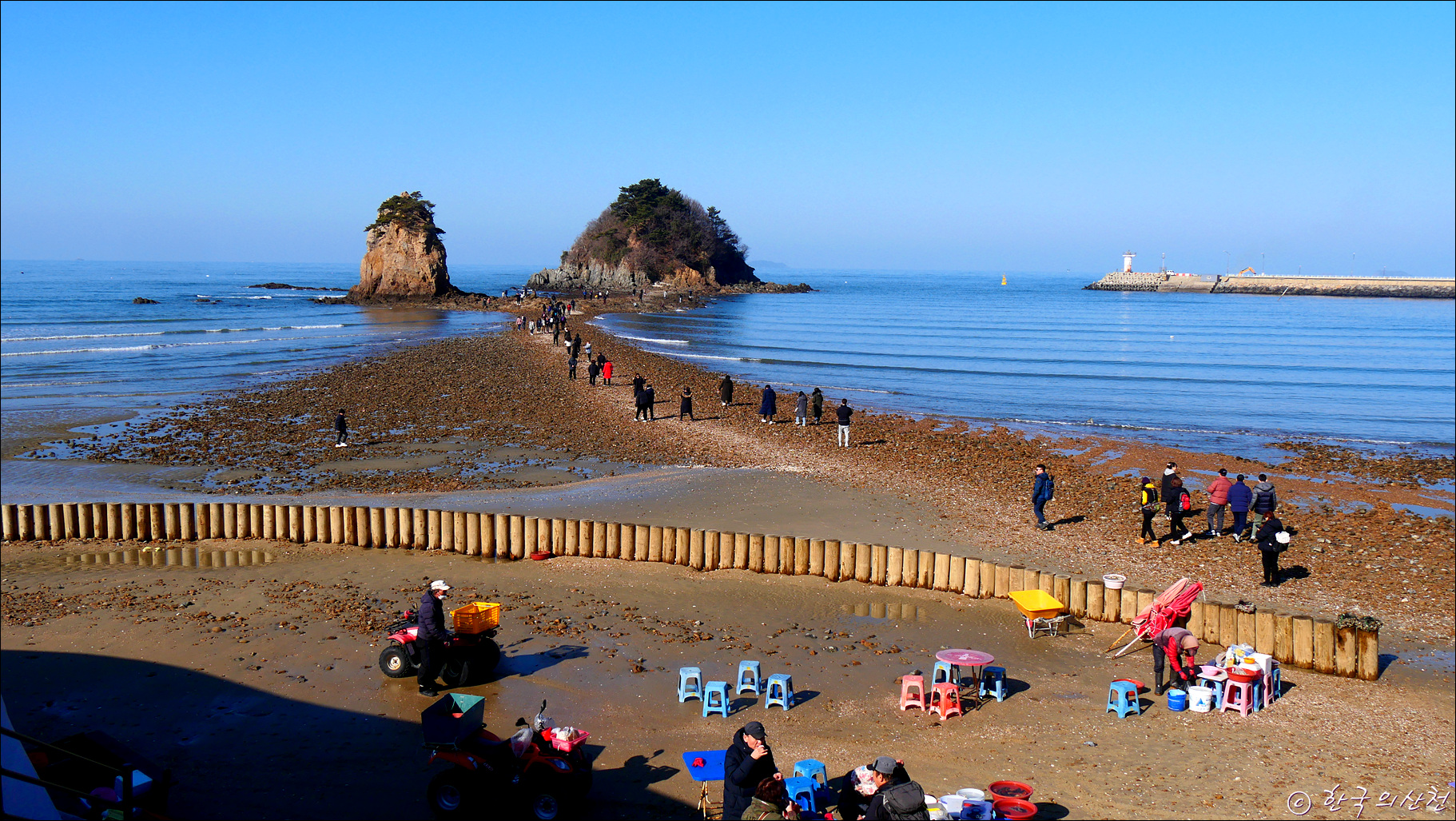 바닷가에는 물이 빠지면 걸어갈 수 있는 할미·할아비바위와 어우러진 신비롭고 멋진 풍경을 감상할 수 있어 사시사철 많은 관광객이 찾는 곳이다