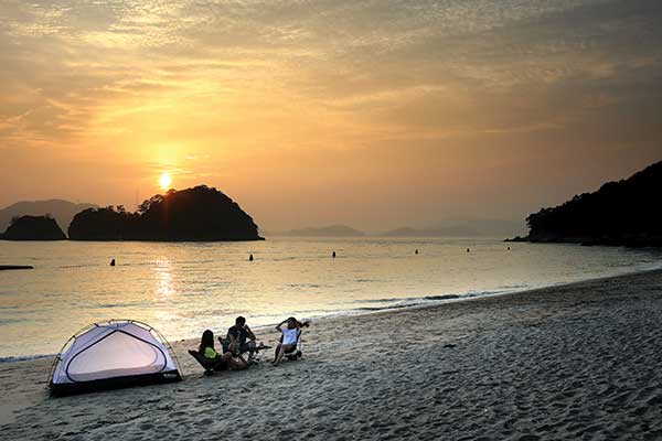관매도해수욕장 앞 전설 같은 소나무숲에선 달콤한 풍경을 배경으로 낭만적인 하룻밤을 보낼 수 있다.