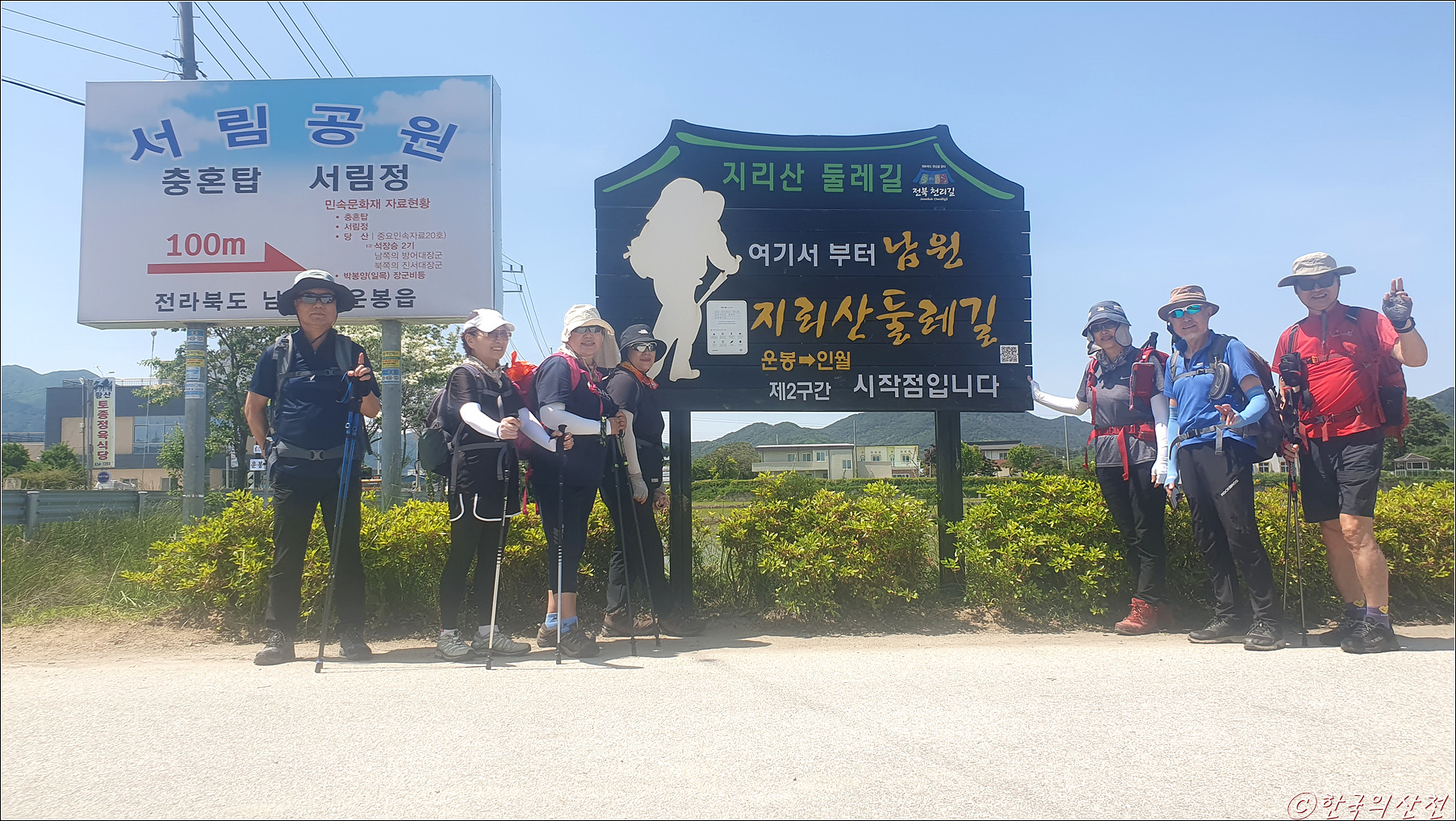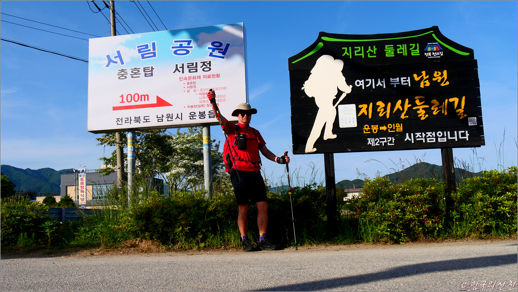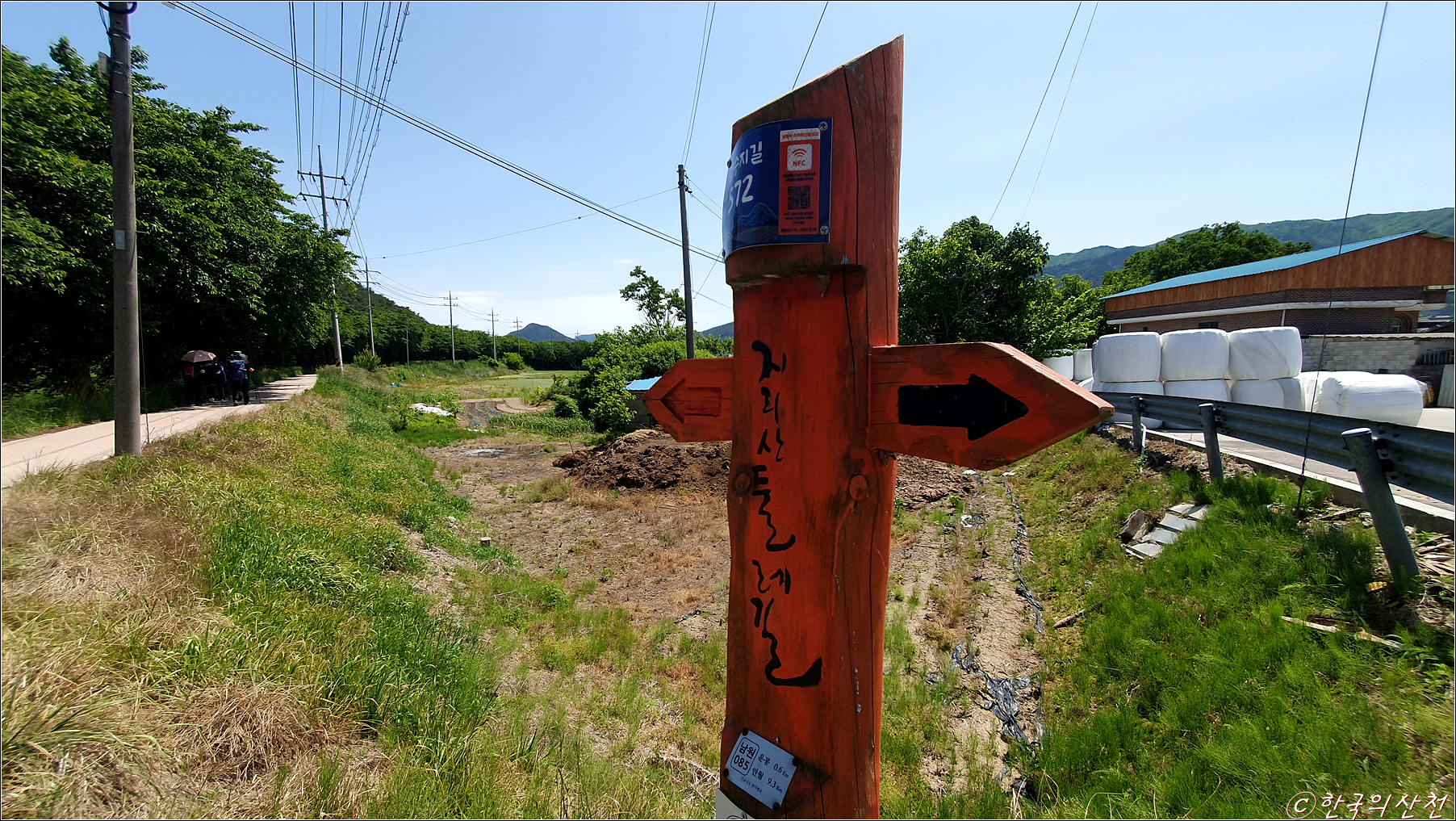 이정표의 빨간색 방향은 지리산을 중심으로 시계 방향, 일반적으로 정방향이라고 부른다