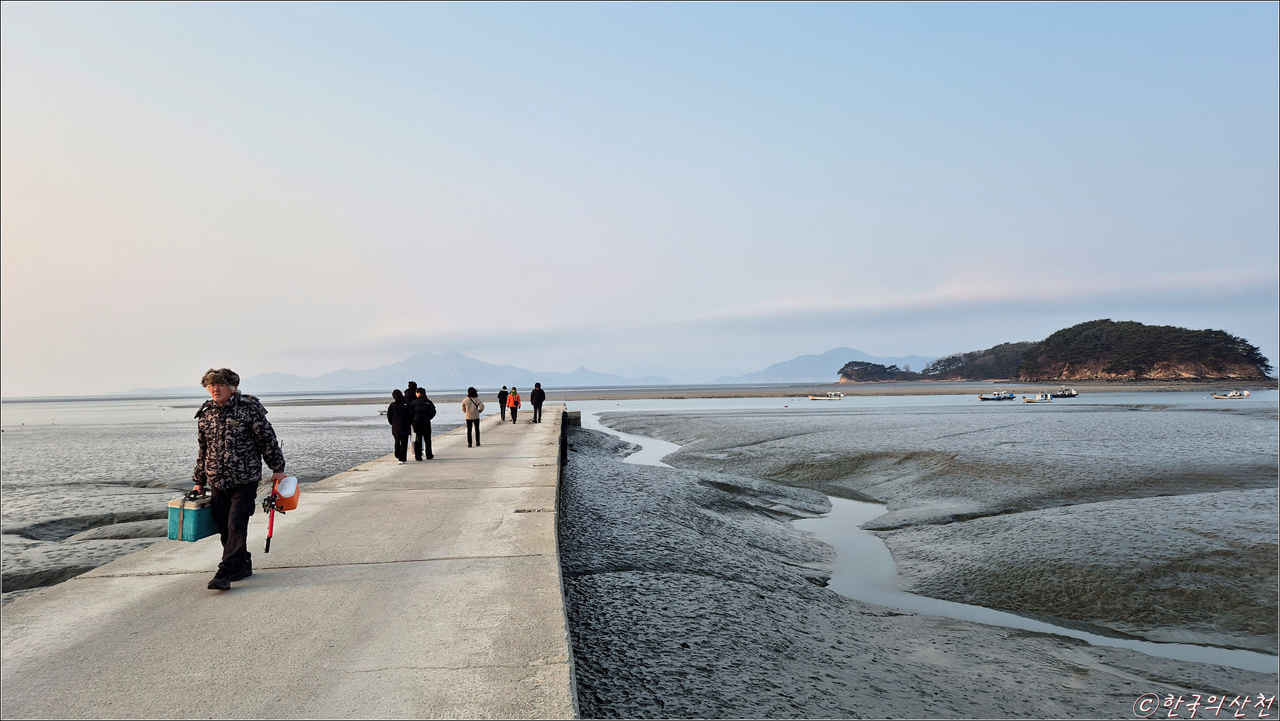 예단포에 도착하니 서서히 물이 들어오고 석양이 지고 있었다