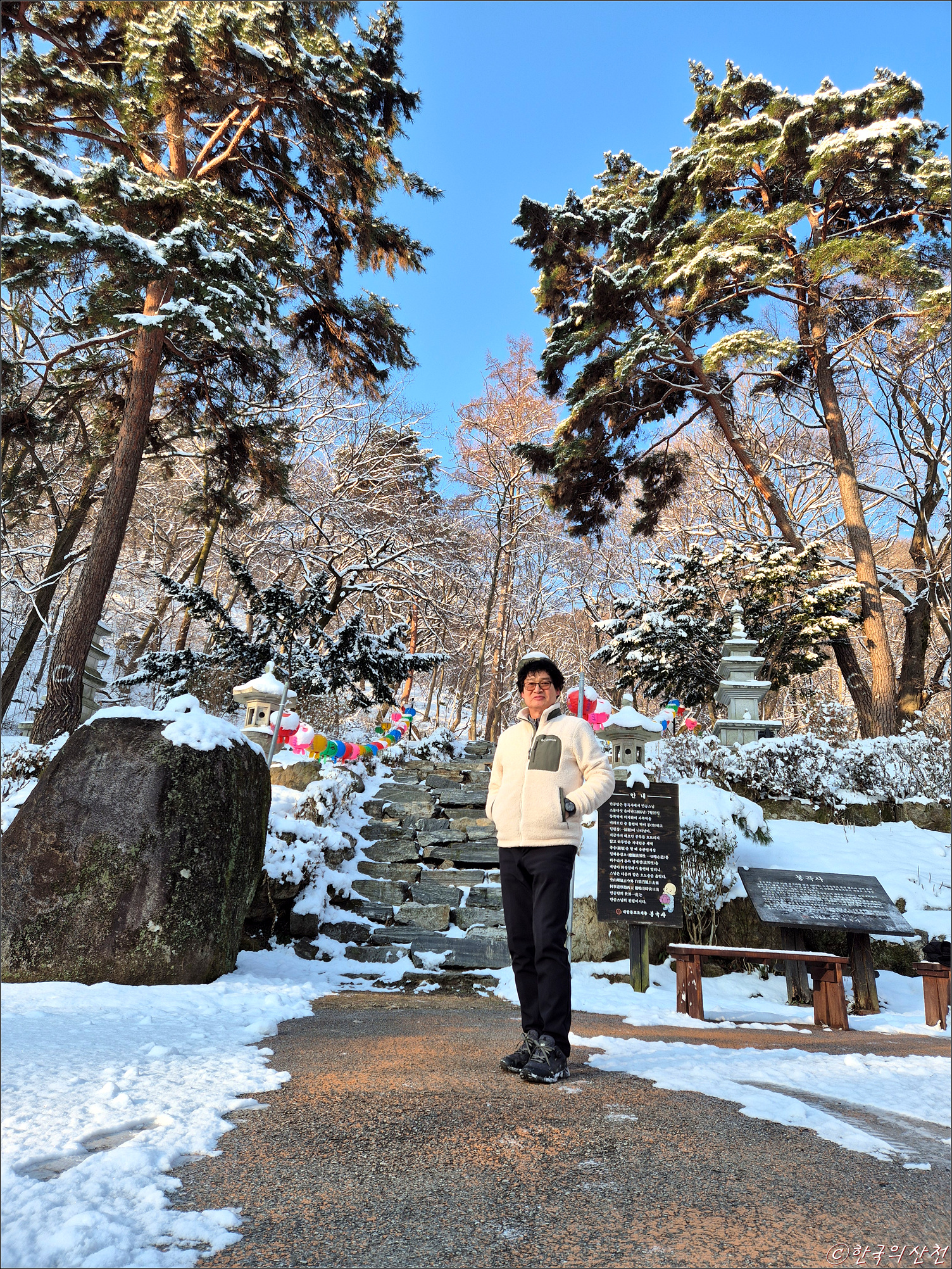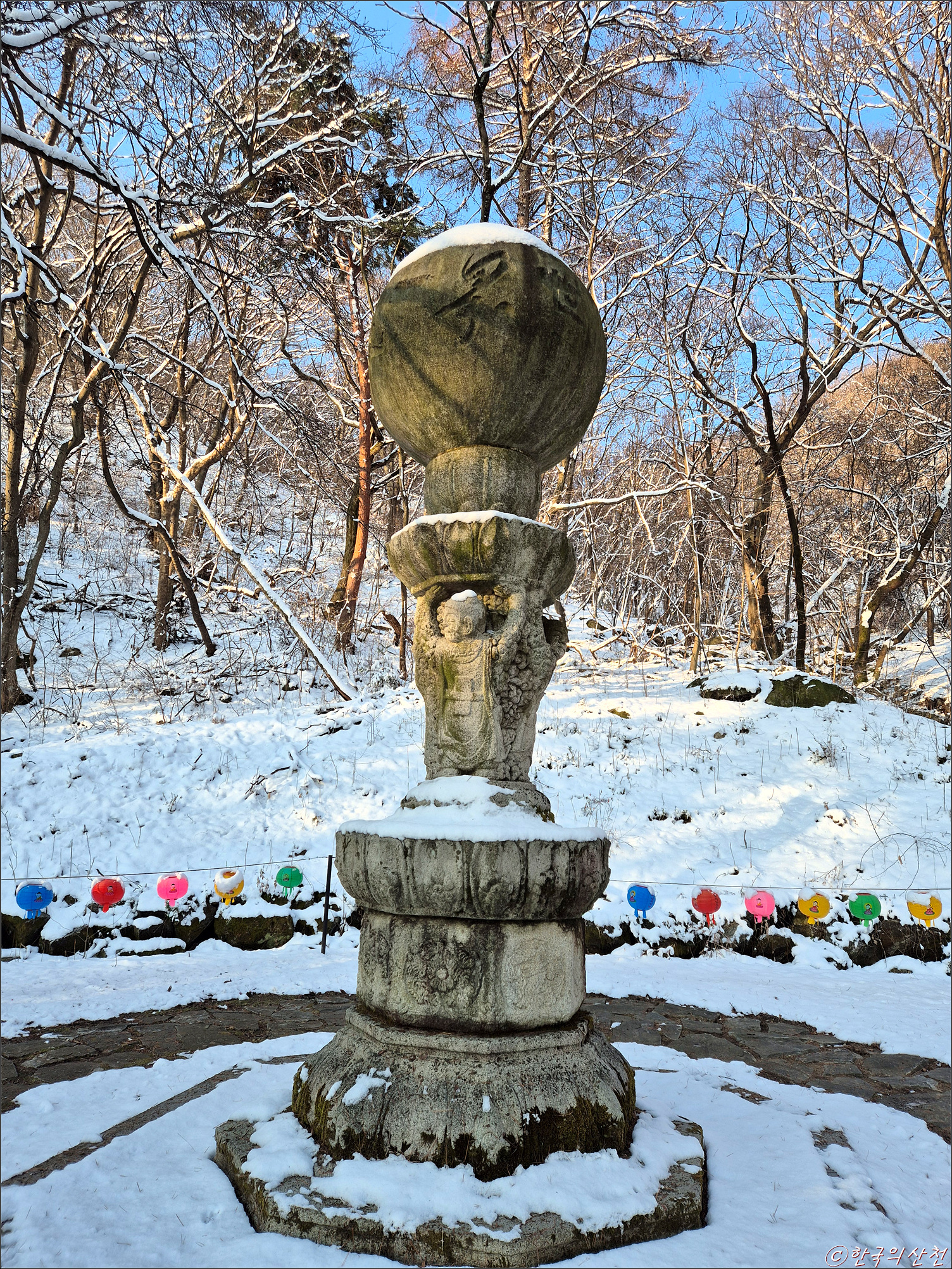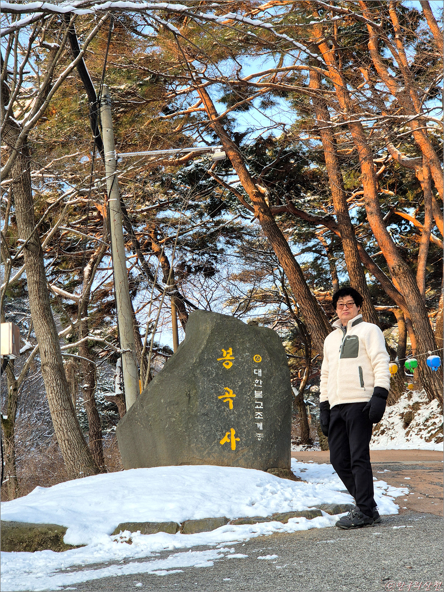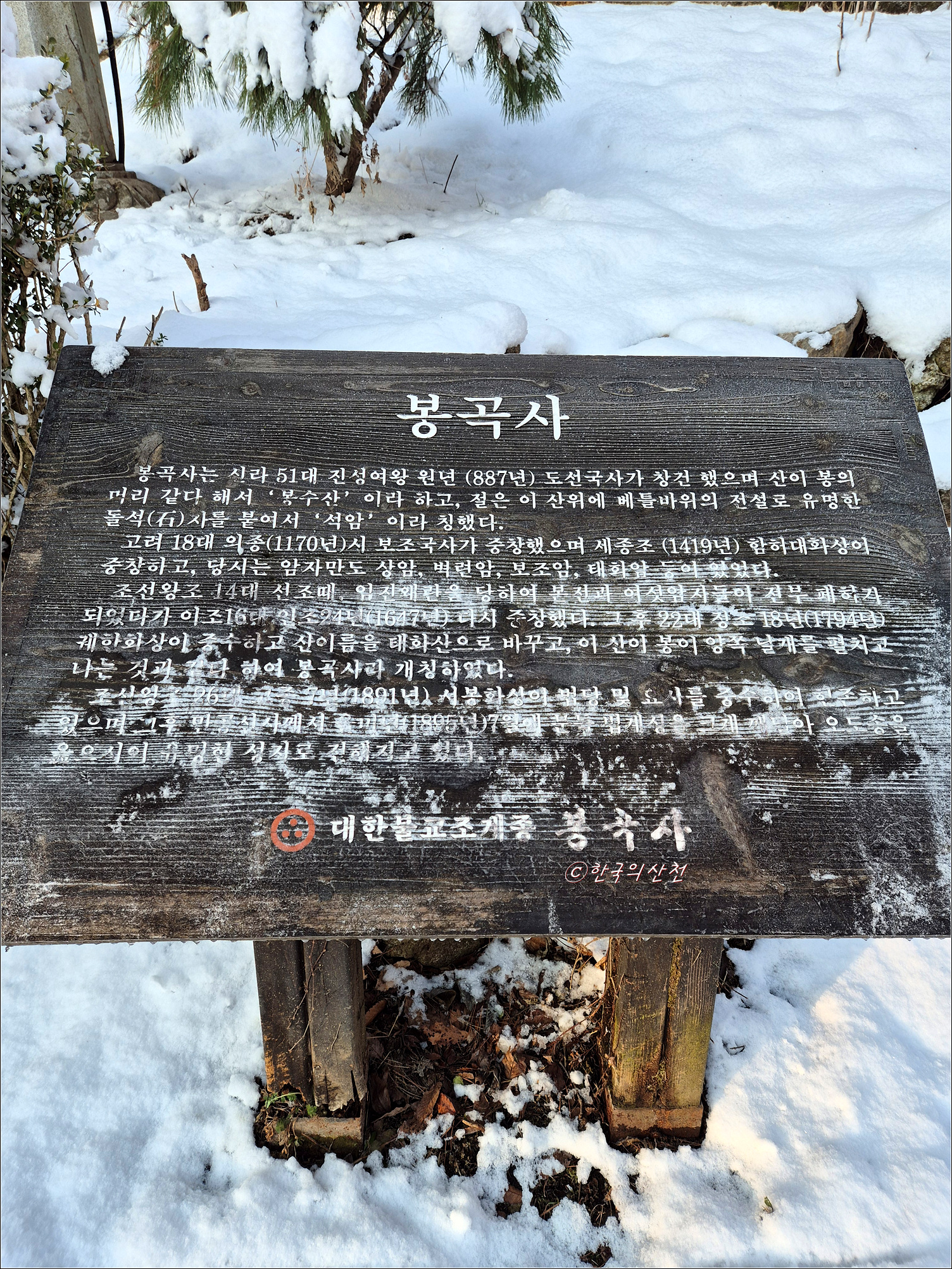 춘삼월에 눈으로 덮인 봉곡사 천년의 숲길 탐방