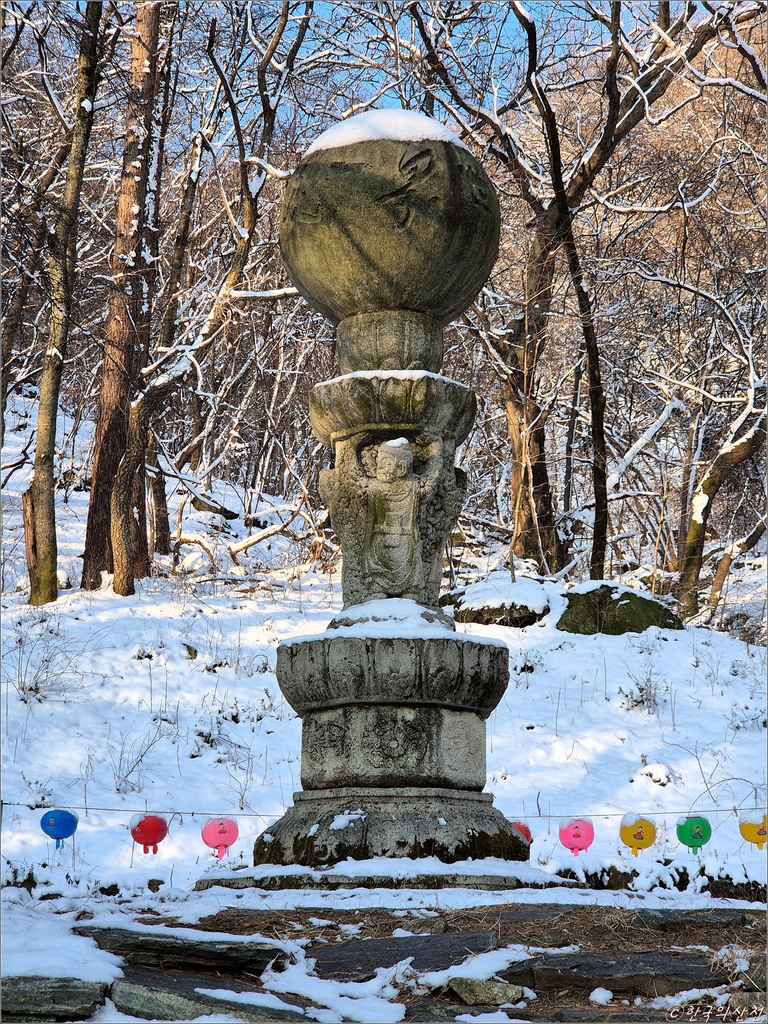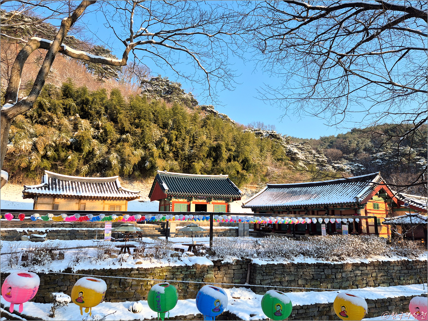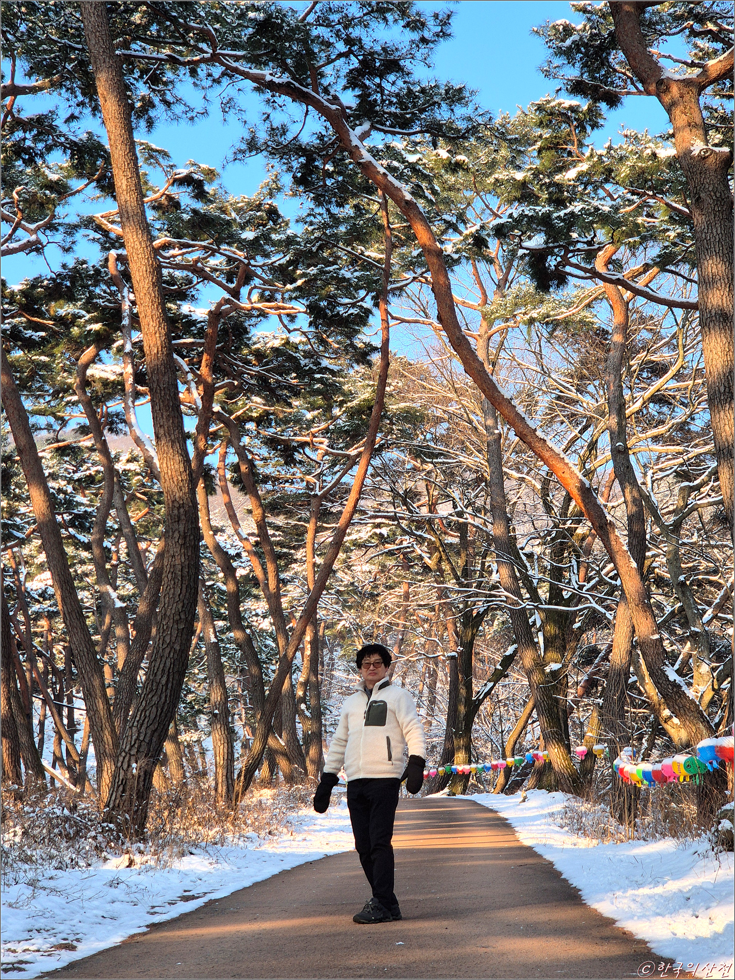 춘삼월에 눈으로 덮인 봉곡사 천년의 숲길 탐방