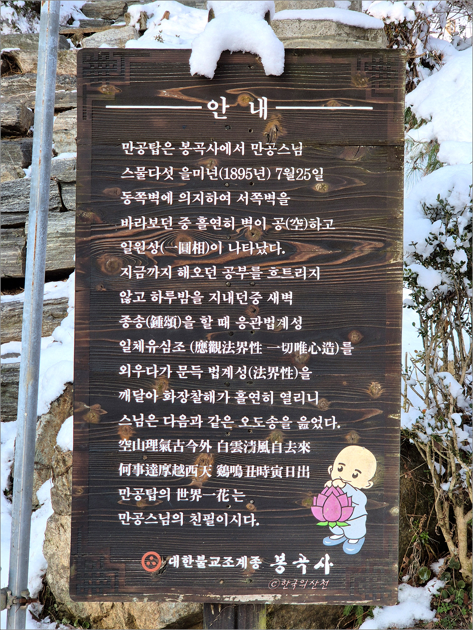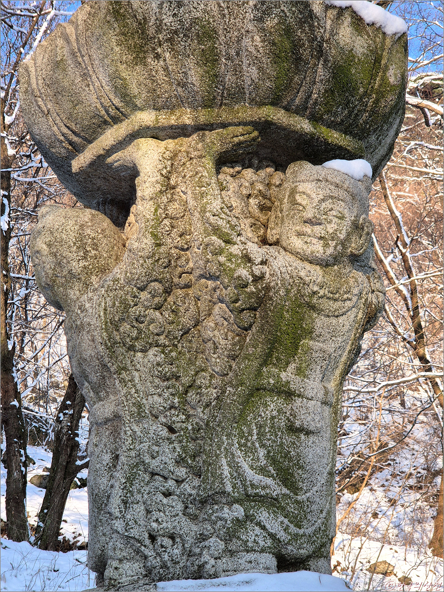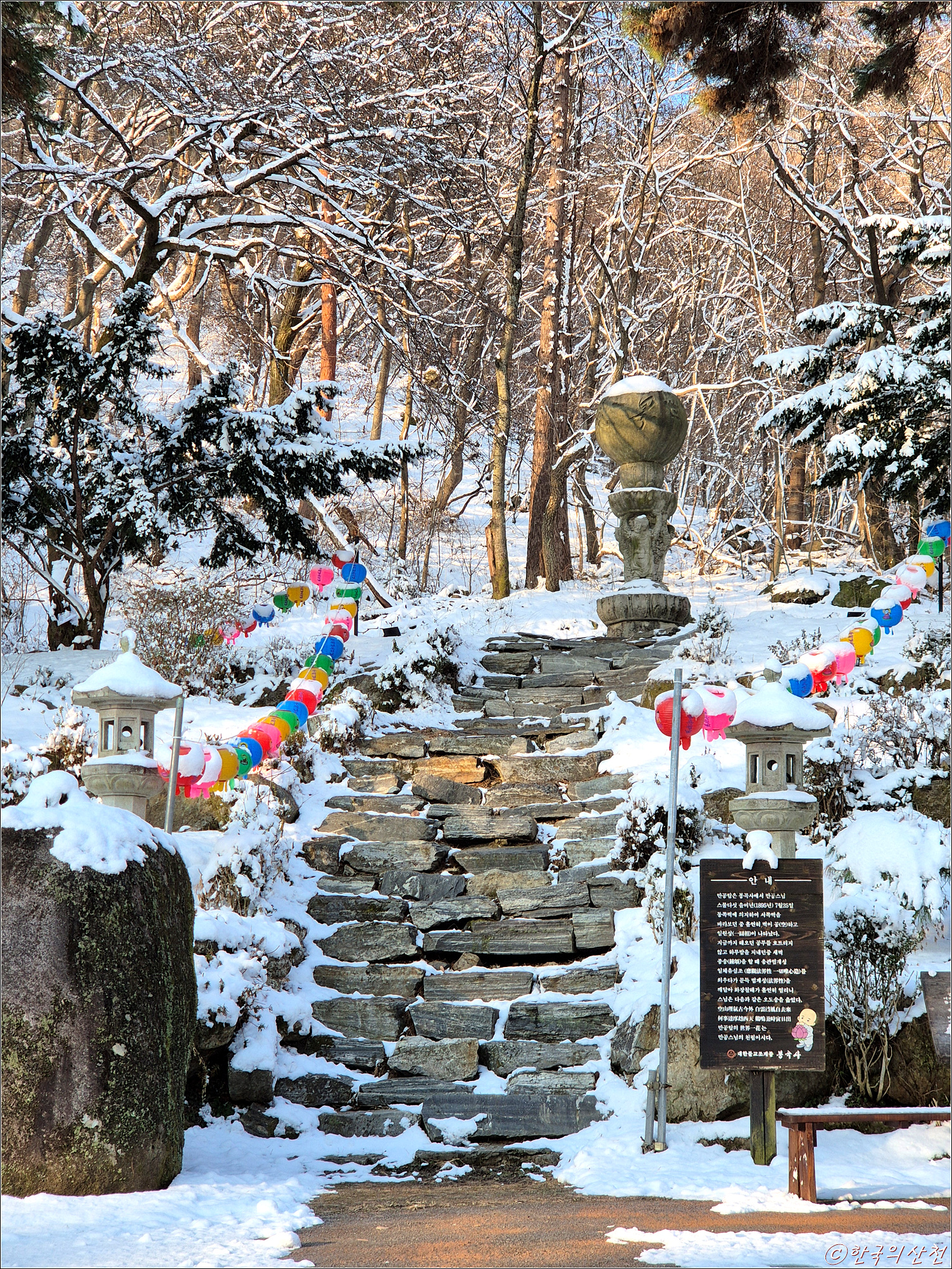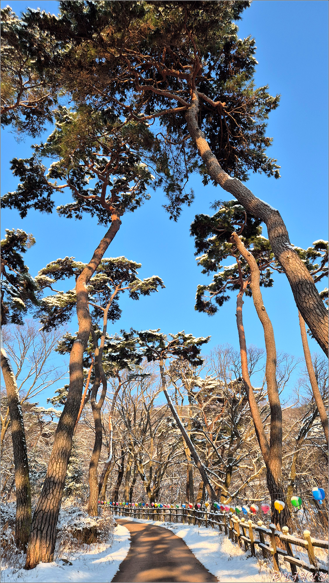 춘삼월에 눈으로 덮인 봉곡사 천년의 숲길 탐방