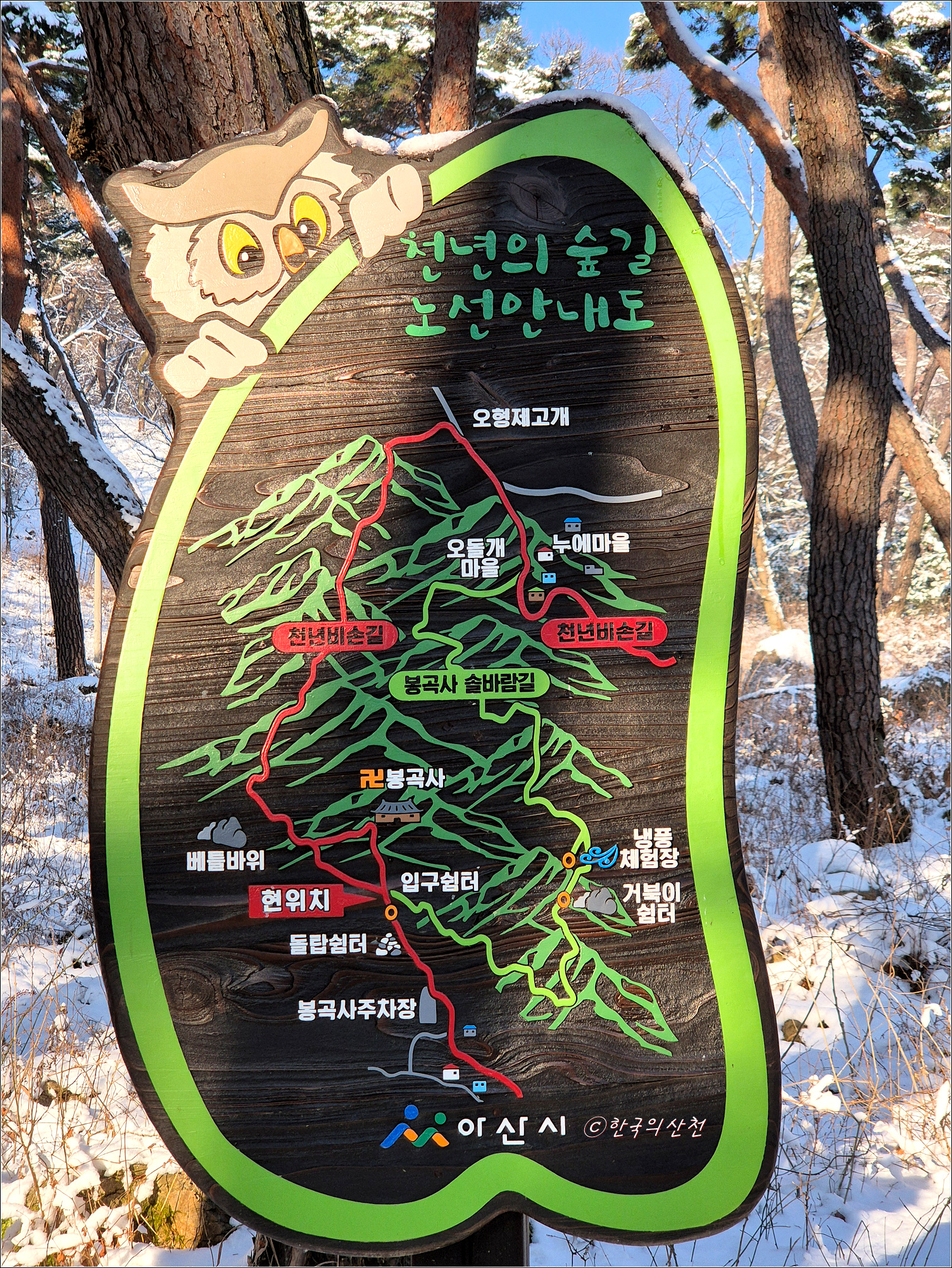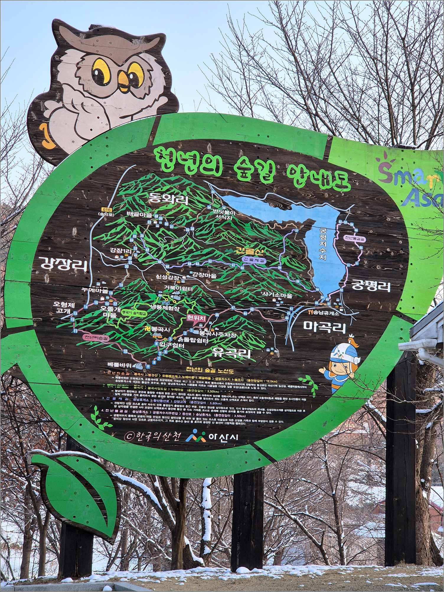 봉곡사 주차장에 커다란 ‘천년의 숲길’ 안내도가 설치되어 있다.